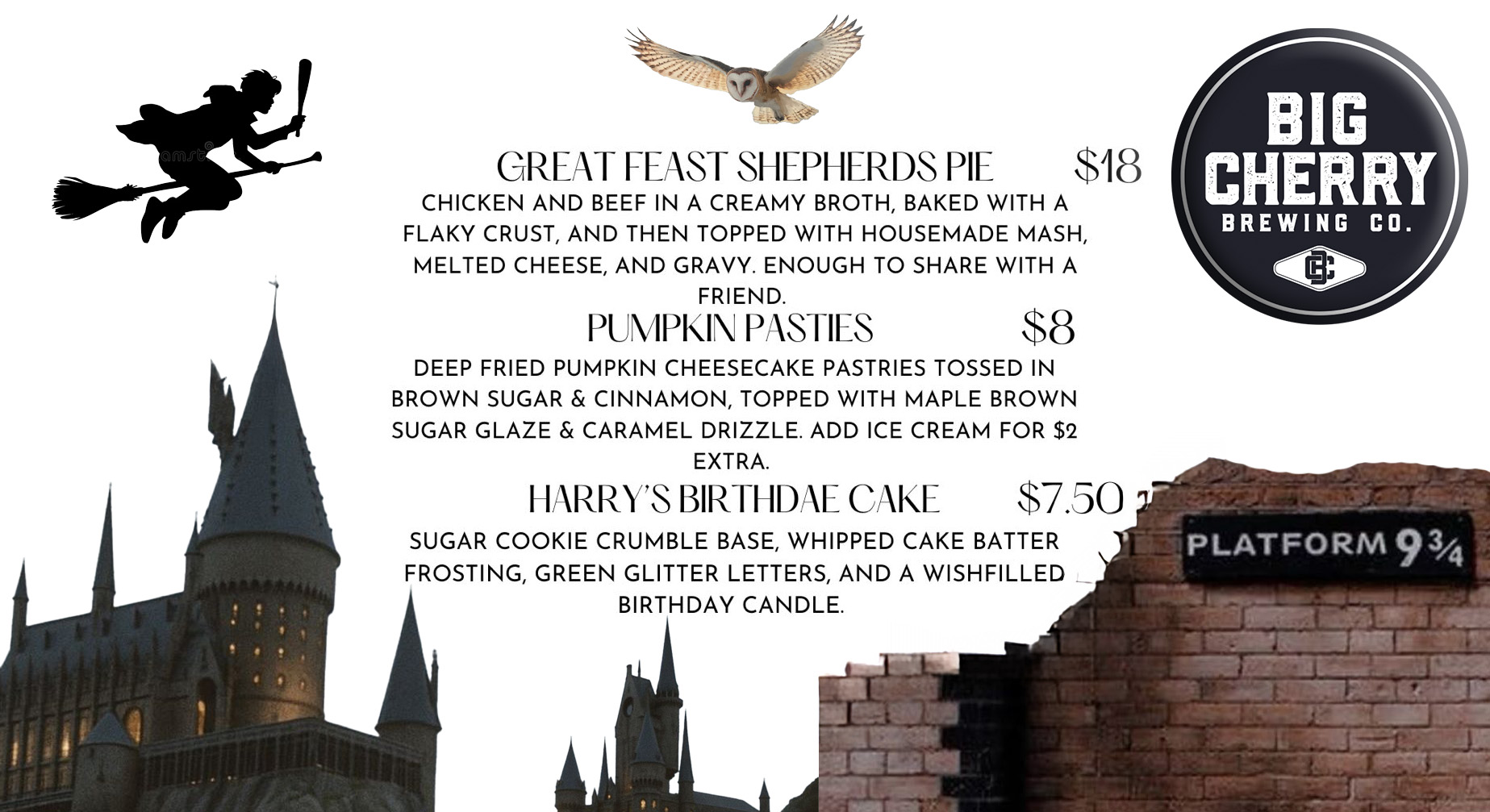 Big Cherry Brewing Hogwarts Menu