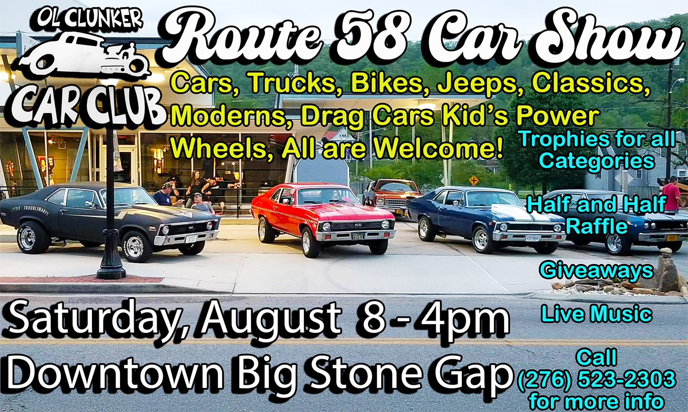 #BigStoneGap #Route58CarShow #OlClunkerCarClub #CarShowFun #ClassicCars #LiveMusic #FamilyFun