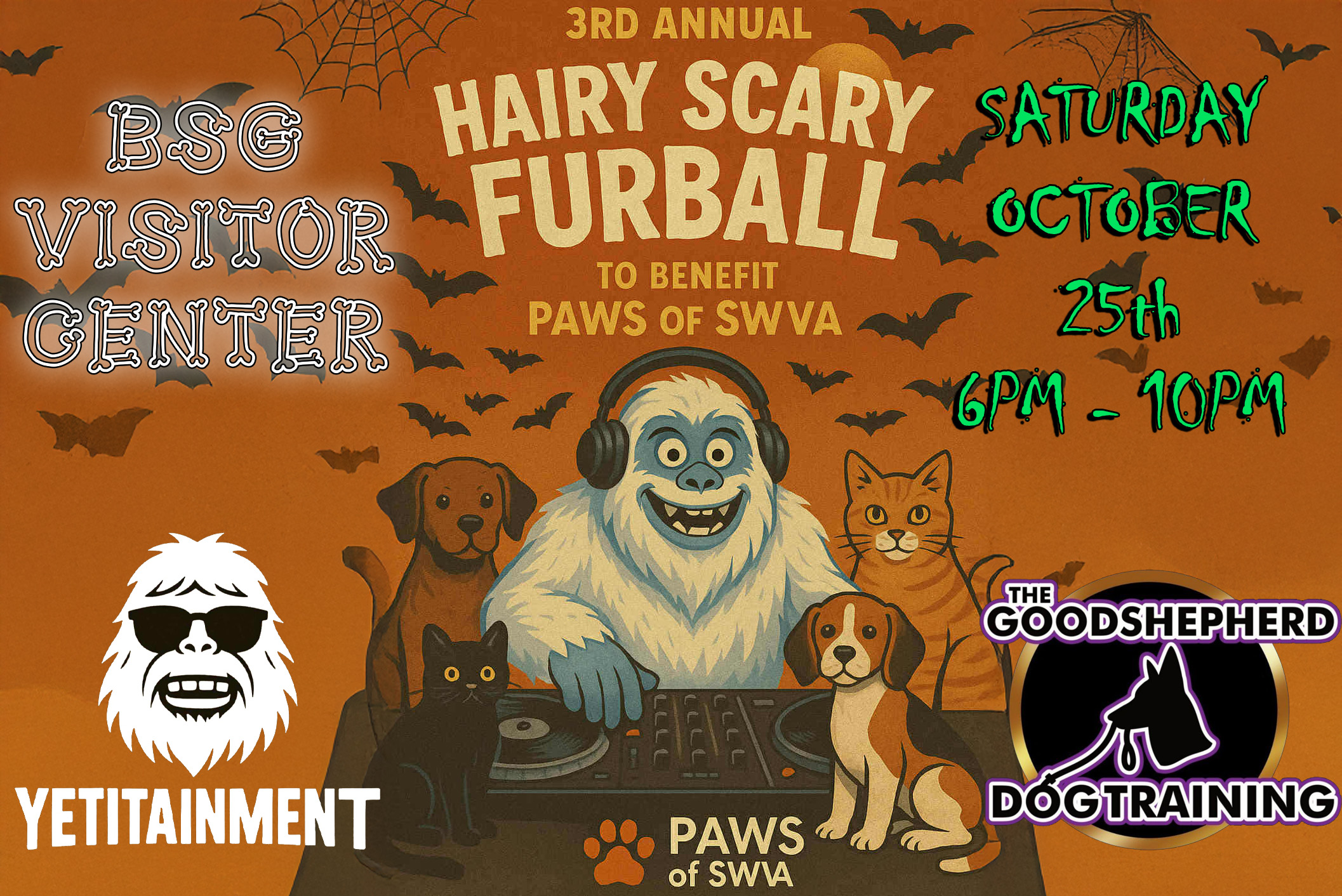 (Human Only!) 3rd Annual Hairy Scary FurBall to benefit PAWS of SWVA.