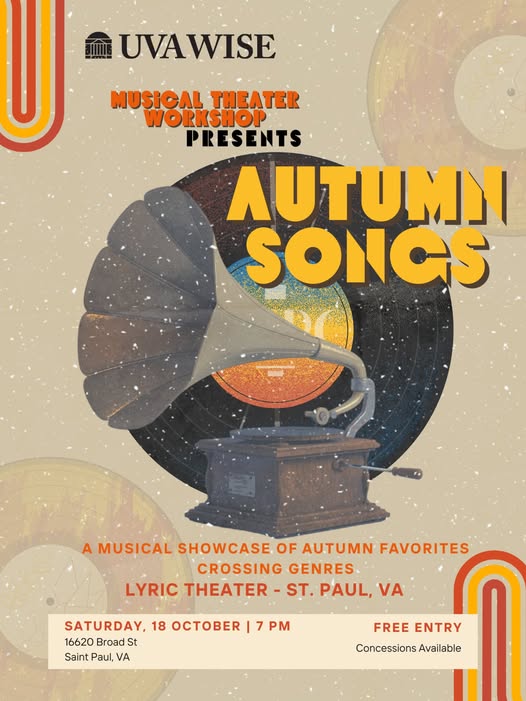 Join the UVA Wise Musical Theater Workshop for Autumn Songs β a showcase of autumn favorites across genres.