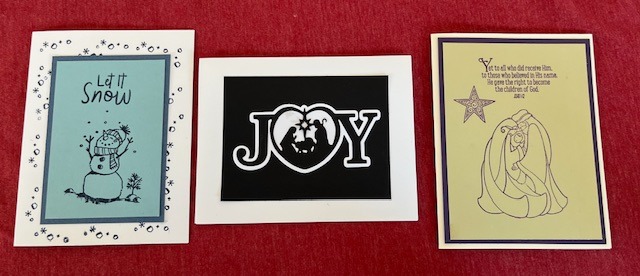 Come Join us for the first Christmas holiday card class. This is a guided instructional class completing three cards from the above picture for $17.00 . This class will last approx. one hour and all supplies will be provided. Participants are welcome to bring a beverage and light snack if desire but no alcohol is permitted.