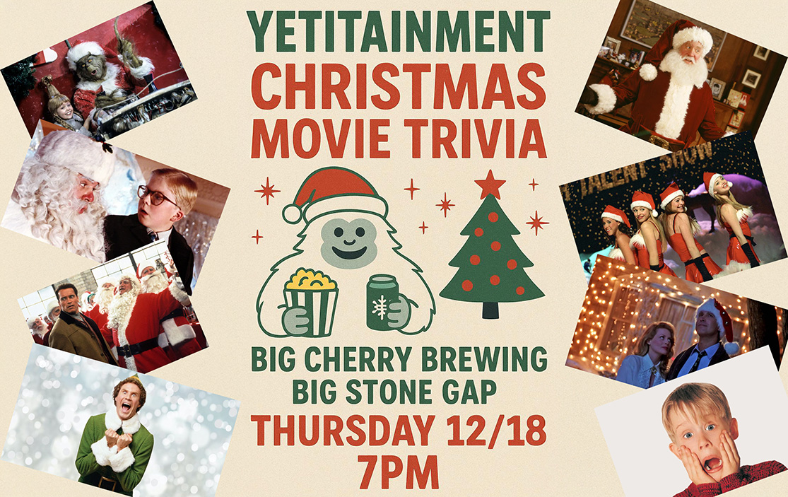 Yetitainment Christmas Movie Trivia is coming to Big Cherry Brewing in Big Stone Gap!