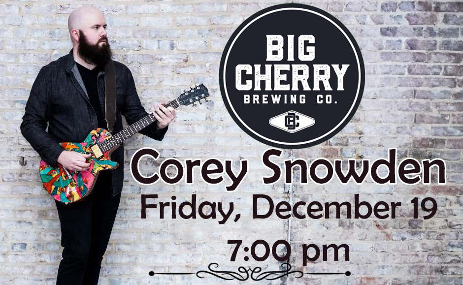 Join us at Big Cherry Brewing Company for Corey Snowden Live on Friday, December 19th at 7 p.m. While you are here, make sure that you try our signature brews and our new Asian inspired menu. Bring the whole family and friends down for an unforgettable holiday evening. We will see you here.