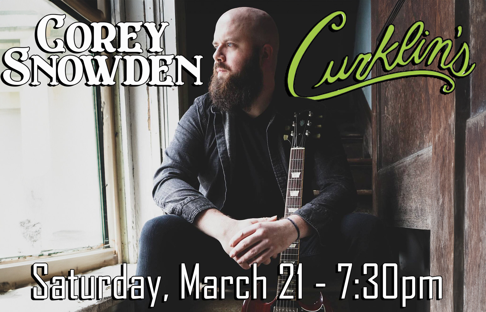 The one and only Corey Snowden will be performing live at Curklin’s on March 21st starting at 7 PM. Hailing from Bristol, Corey is a wonderful musician with an amazing voice that adds the perfect soundtrack to your dinner experience.