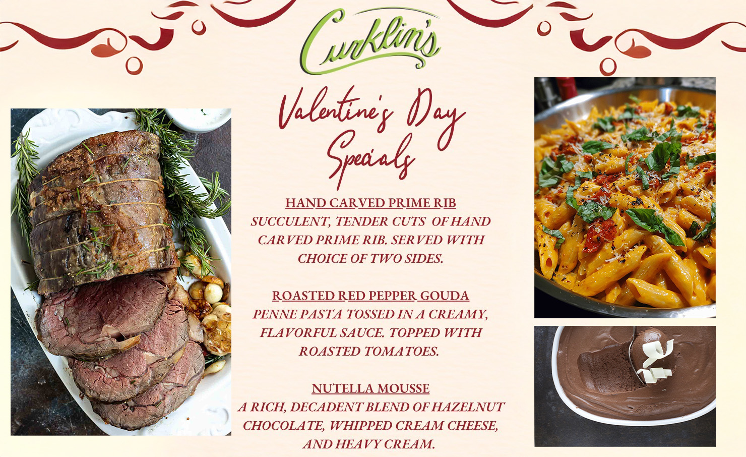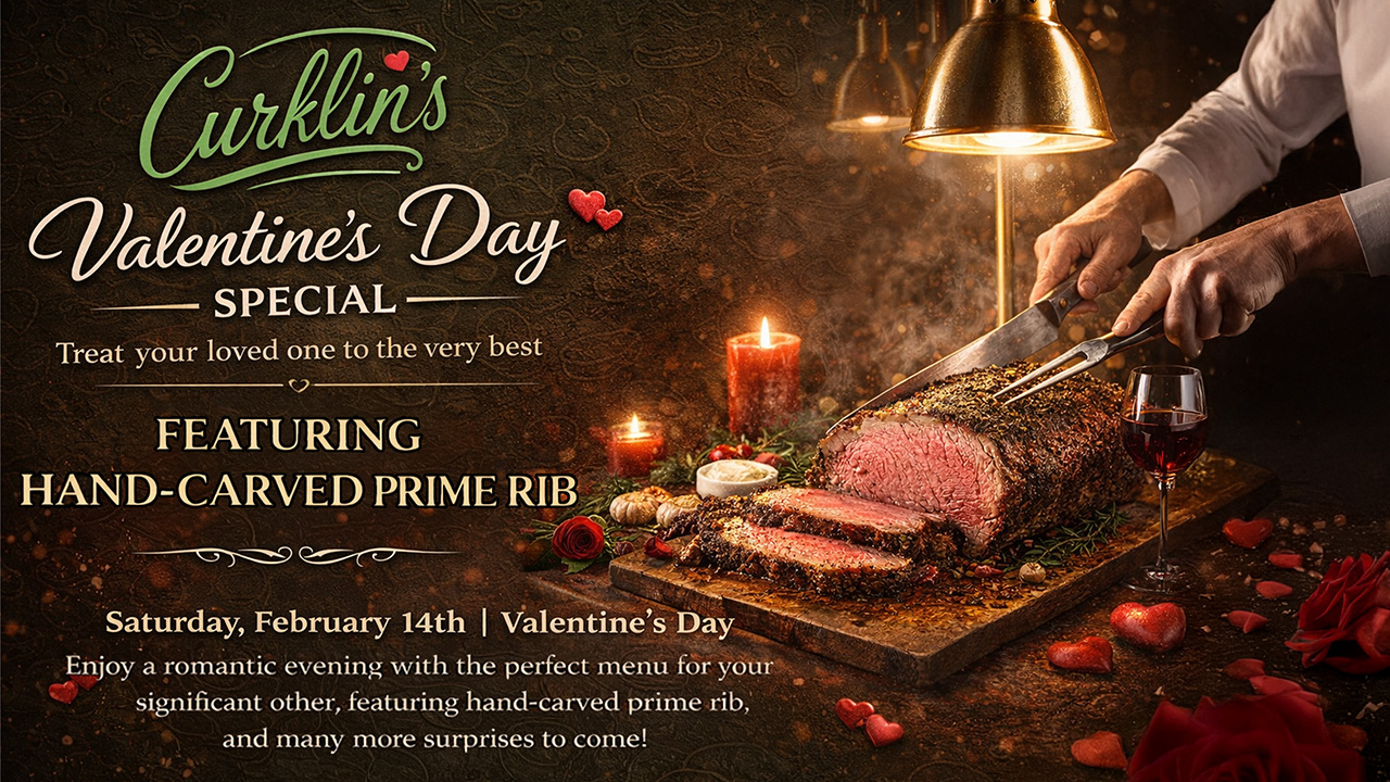 Curklin’s Valentines Day Special featuring Hand Carved Prime Rib