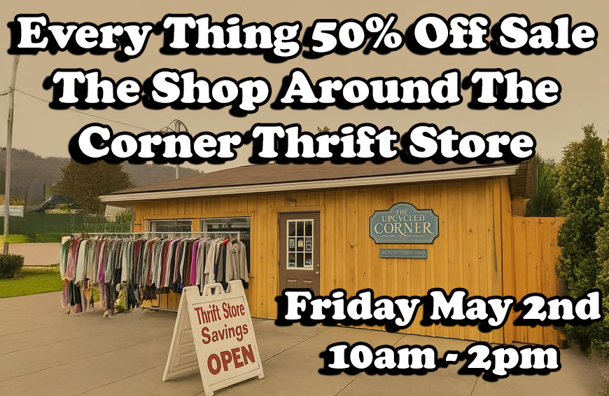 Its Tuesday! Friday will be here in a few days! The Shop Around Corner Thrift Store is Stocked again and READY FOR OUR 1/2 off EVERYTHING SALE Friday 5/2
