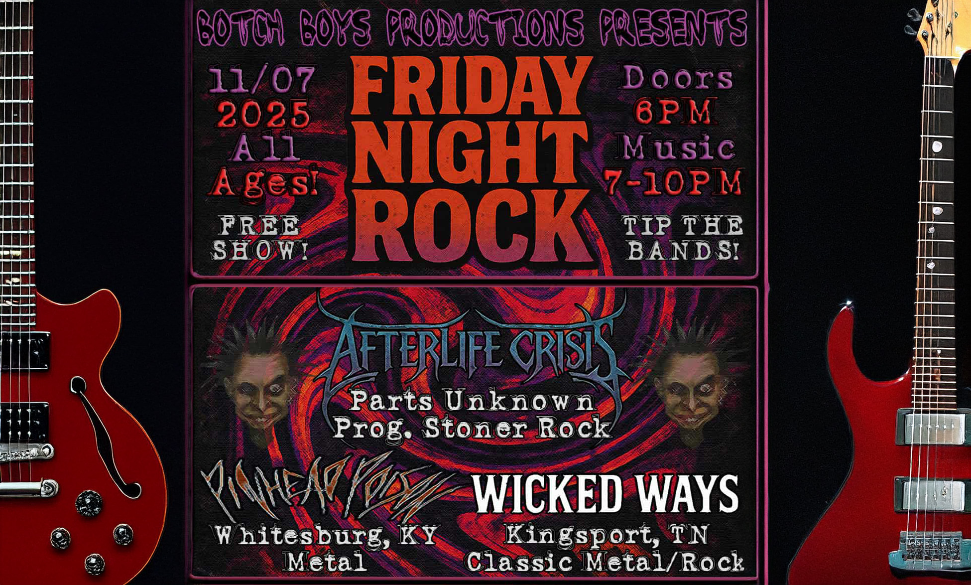 11/7/25 Botch Boys Productions presents another Friday Night Rock at The Big Stone Gap Visitor Center, in Big Stone Gap, Virginia! We have yet another great lineup of different rock/metal styles, representing VA, TN, & KY, for your watching and listening enjoyment, so come join the fun!