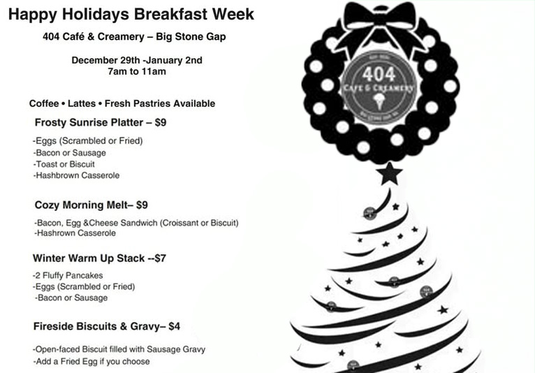 Happy Holiday Breakfast Week at 404 Cafe and Creamery