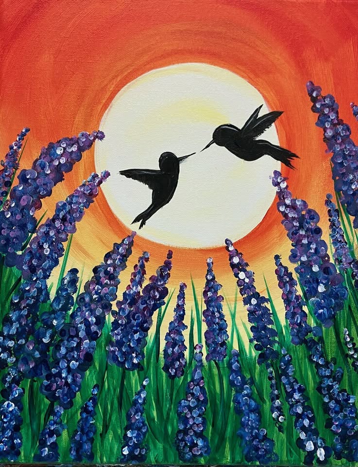 Our adorable 11×14 in. “Hummingbird Love” will be held Saturday, July 12th at 1pm!