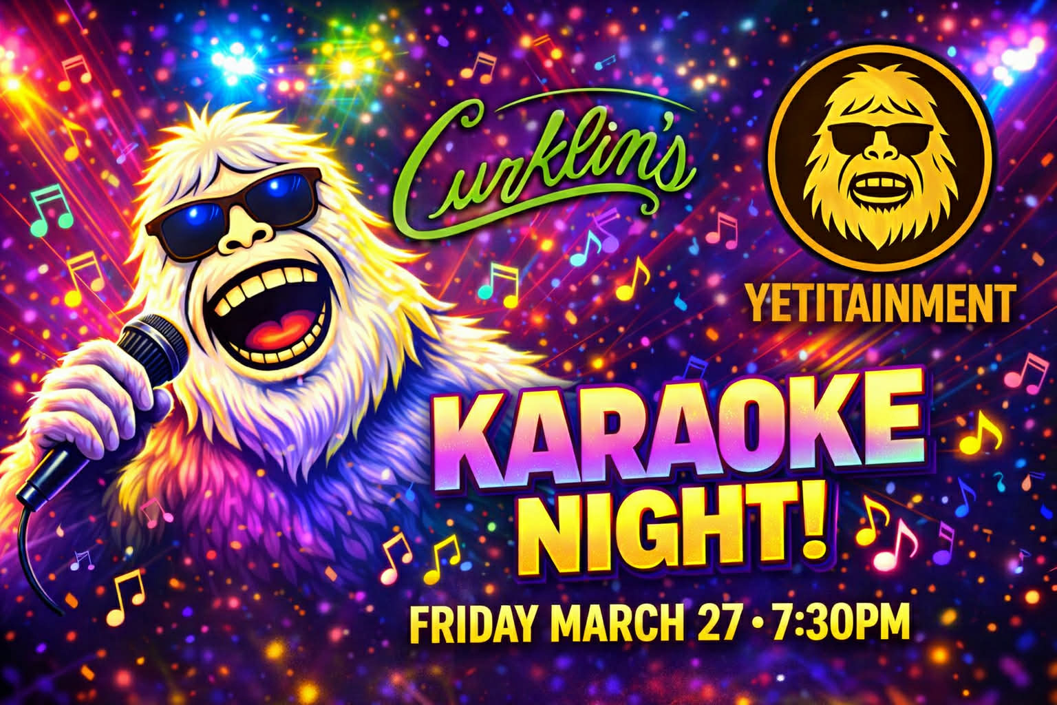 Karaoke Night is back at Curklin’s with the Yeti on Friday, March 27th at 7:30 PM.