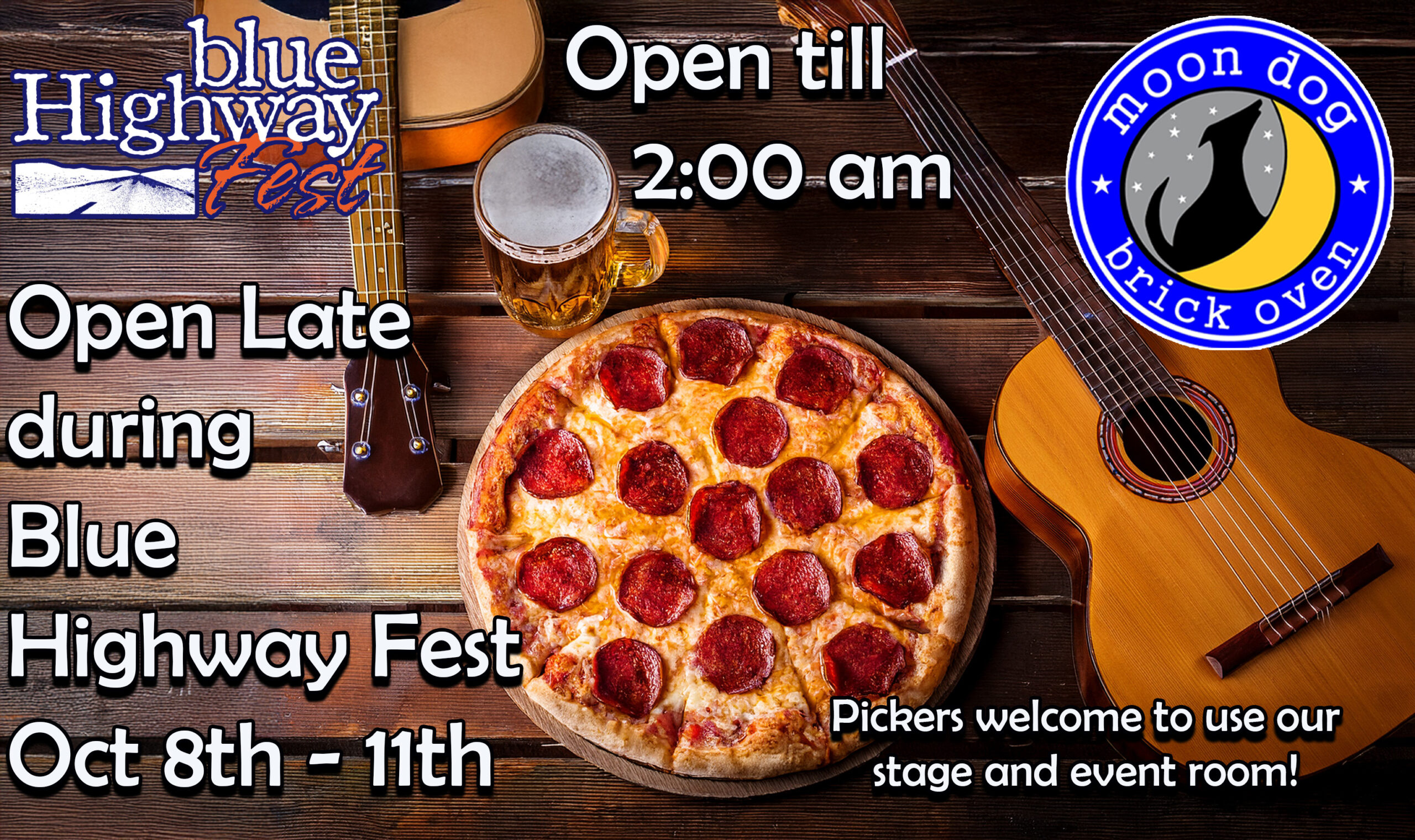 Moon Dog Brick Oven Pizza Open till 2AM during Blue Highway Fest