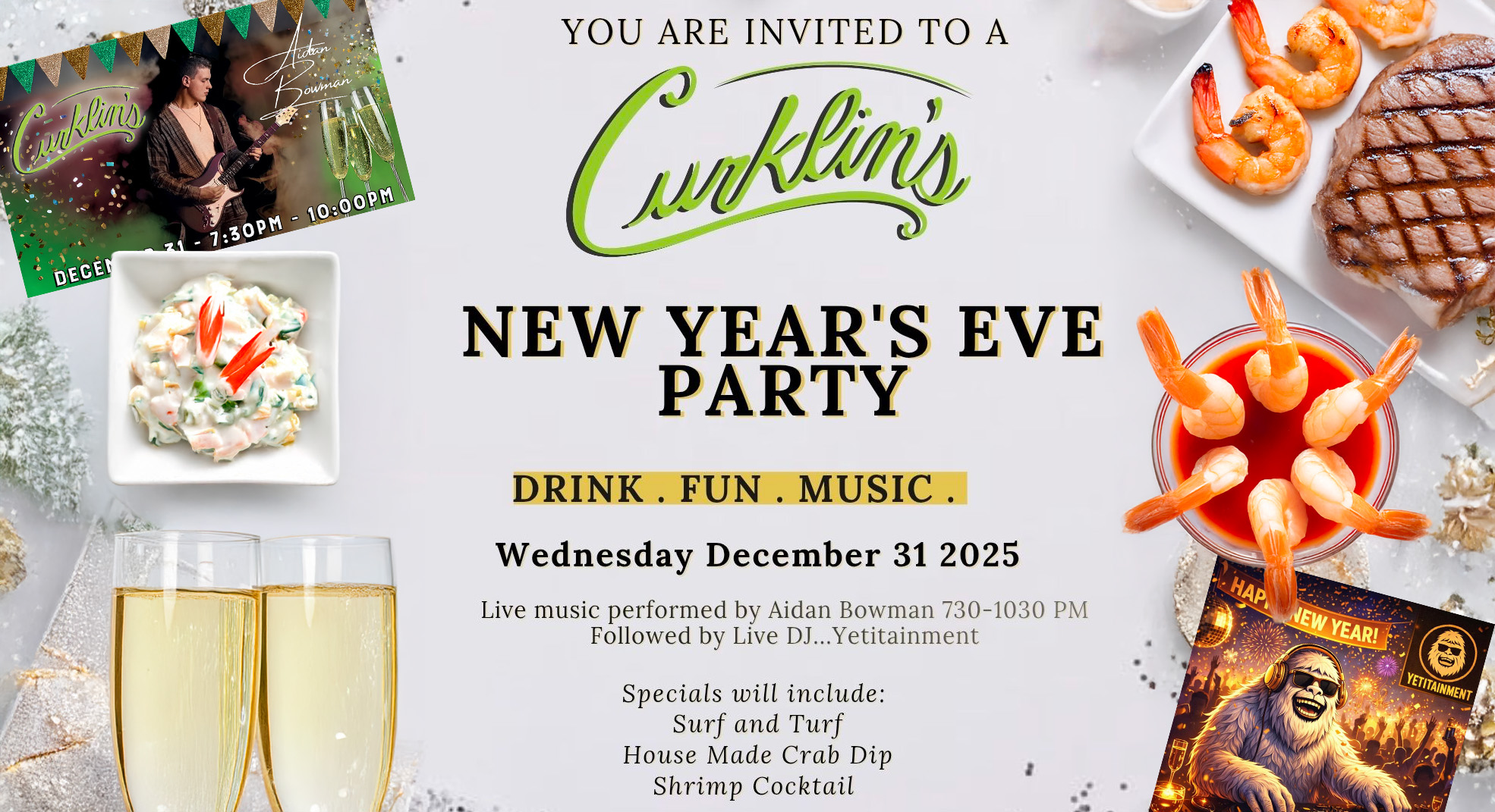 Join Big Stone Gap’s Downtown Restaurants and music venues for a night you will never forget! One of the biggest parties in Southwest Virginia! Food and drink specials, live music, dancing, Champagne toasts, and tons of confetti will make this the best way to start the new year! Come on down and celebrate with us!