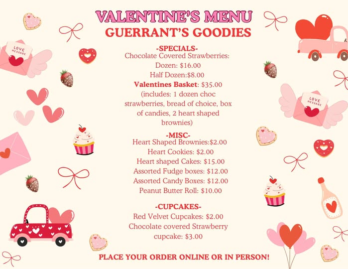 Check below for a complete listing of all Valentine’s Day specials happening in town.