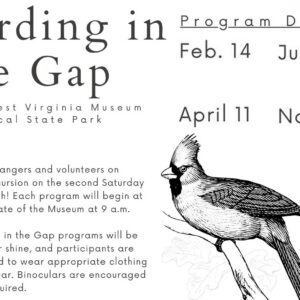 Birding in the Gap Series Returns in 2026! The Southwest Virginia Museum Historical State Park is excited to announce the return of its Birding in the Gap programs, offered on the second Saturday of February, April, June, and November in 2026. The first program of the year will take place on Saturday, February 14, from… Read More »