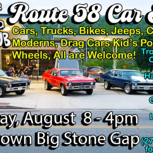 Start polishing those rides. The Ol Clunker Car Club is bringing the Route 58 Car Show to Downtown Big Stone Gap on Saturday, August 8 from 8 AM to 4 PM, and it is going to be a full day of horsepower and hometown fun. Cars, trucks, bikes, Jeeps, classics, modern builds, drag cars, kid’s… Read More »