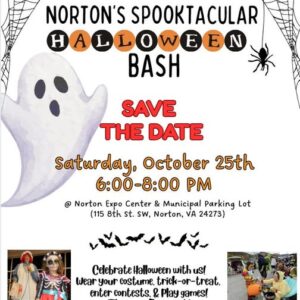SAVE THE DATE Norton’s annual Halloween Spooktacular Bash SATURDAY, OCTOBER 25, 2025, 6:00-8:00 PM. (@ Norton Expo Center & Municipal Parking Lot- 115 8th St. SW., Norton, VA 24273)