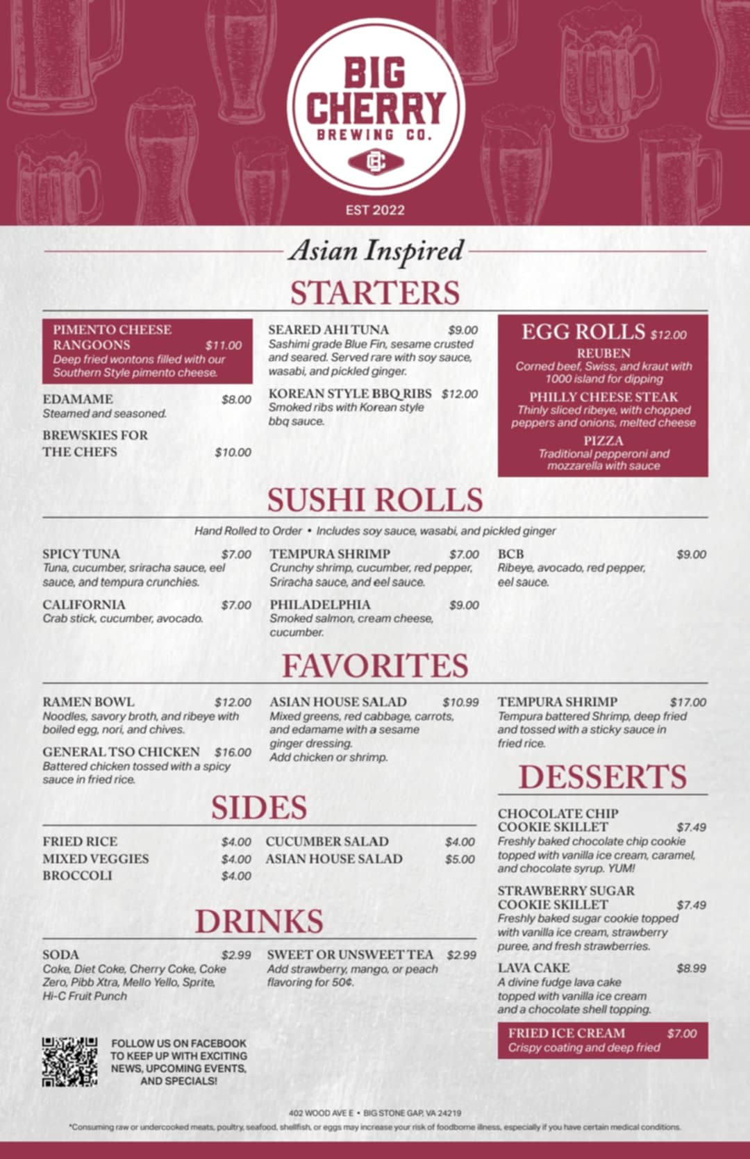 NEW MENU ALERT! Asian Fusion is here! Look in Gallery below for the new menu!